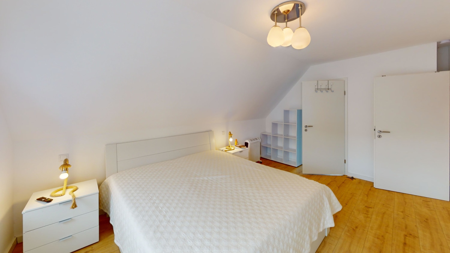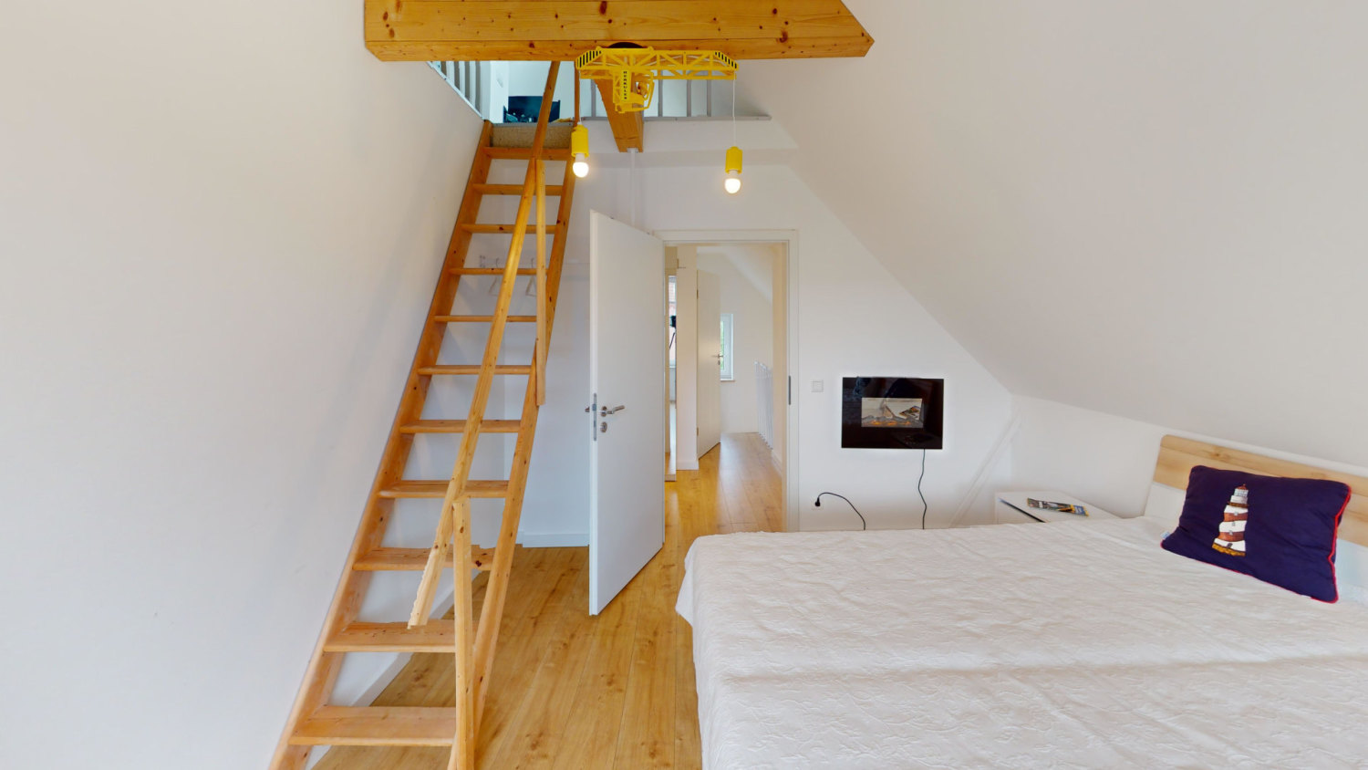 In den zwei Schlafzimmer, die jeweils mit einem Doppelbett ausgestattet sind, können Sie ruhig und erholsam schlafen, um gestärkt für den nächsten Urlaubstag zu sein. Im Dachgeschoss, welches Sie über eines der Schlafzimmer erreichen finden Sie die weiteren zwei Betten.