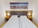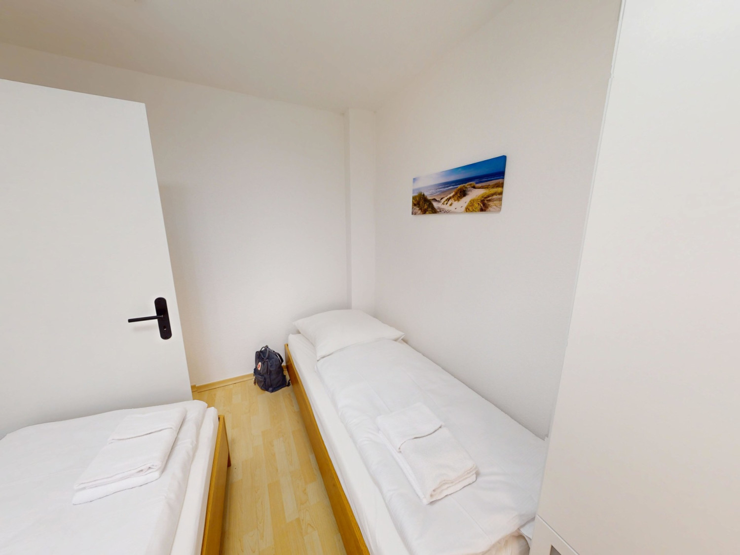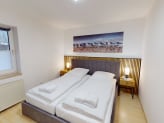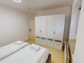 Die Wohnung bietet ein komfortables Doppelbett sowie zwei Einzelbetten. Die Schlafzimmer verfügen über Verdunklungsmöglichkeiten, die für erholsamen Schlaf sorgen.