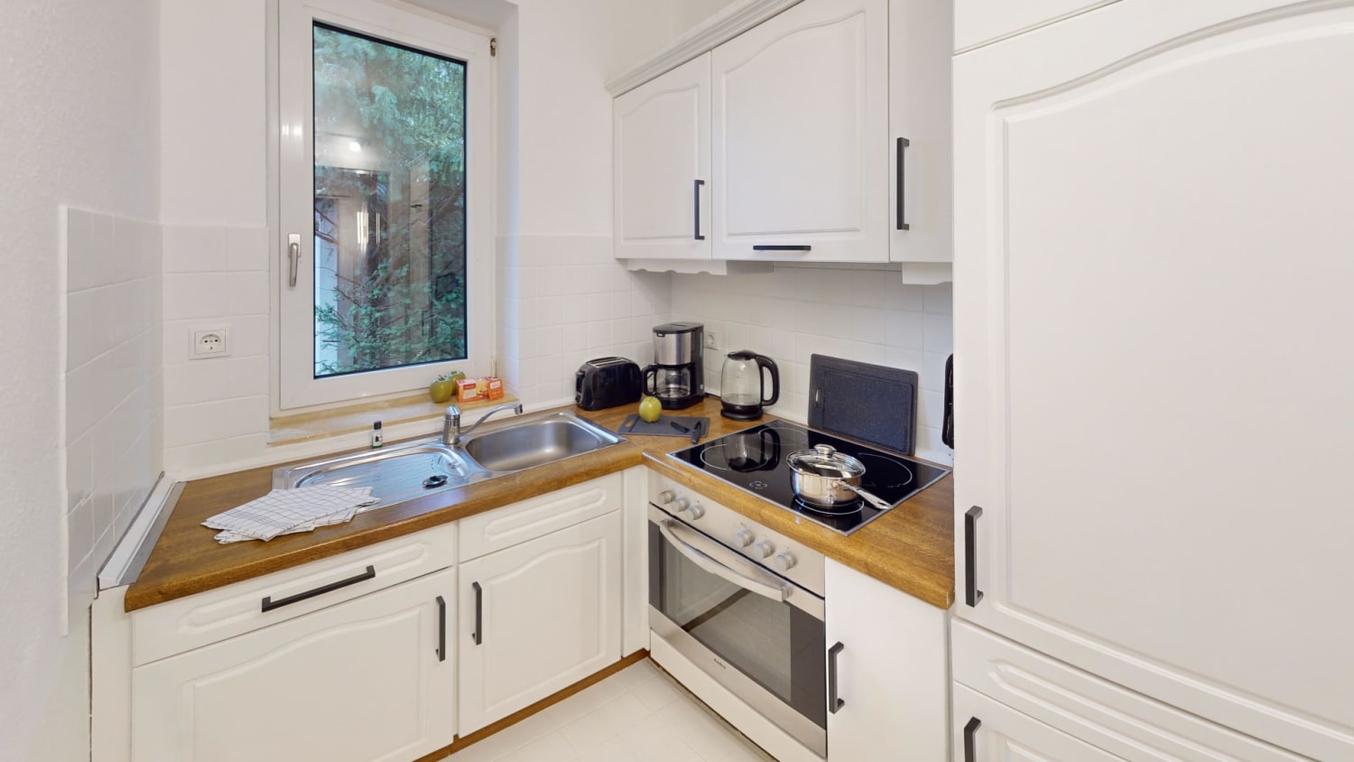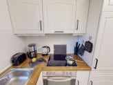 In der voll ausgestatteten Küche lässt sich der Tag ganz flexibel gestalten. Hier können Sie sich entspannt Ihr Frühstück zubereiten und dieses im Wohn- und Essbereich genießen.