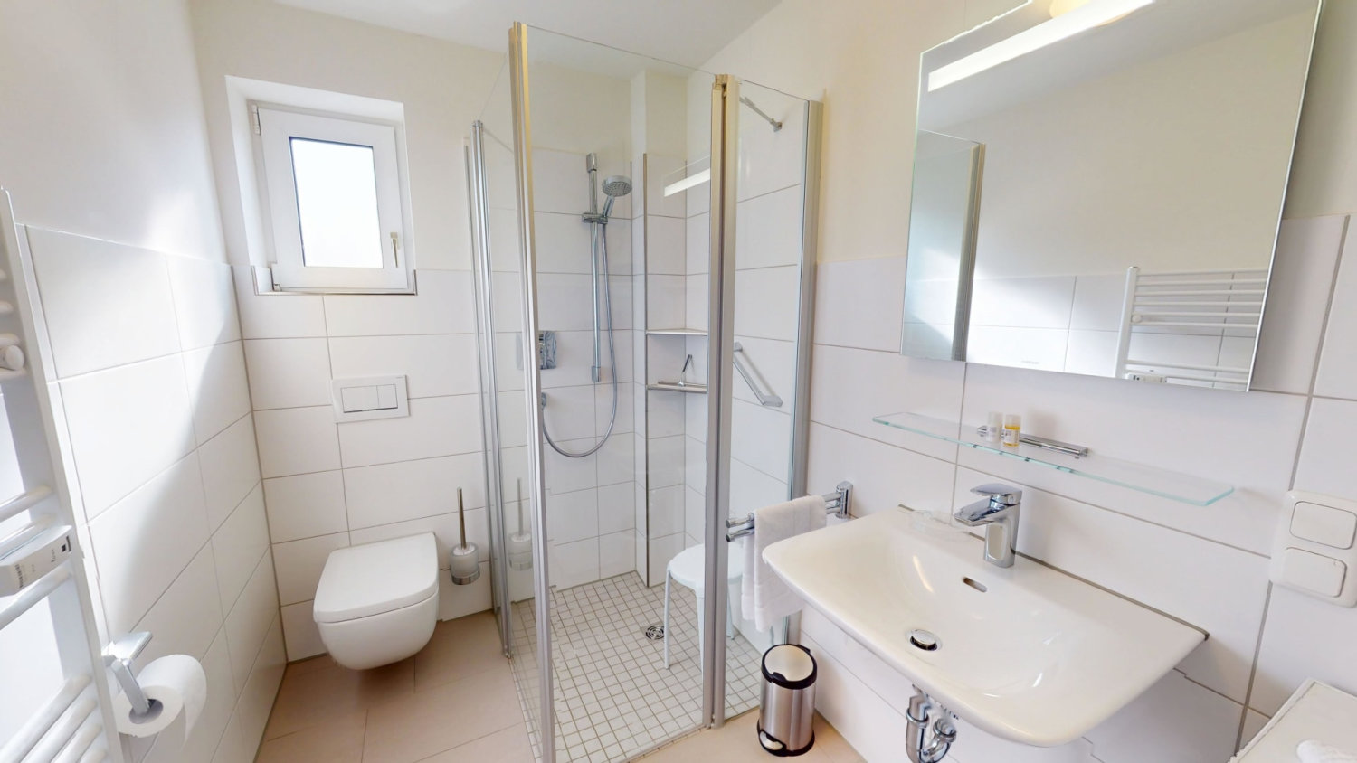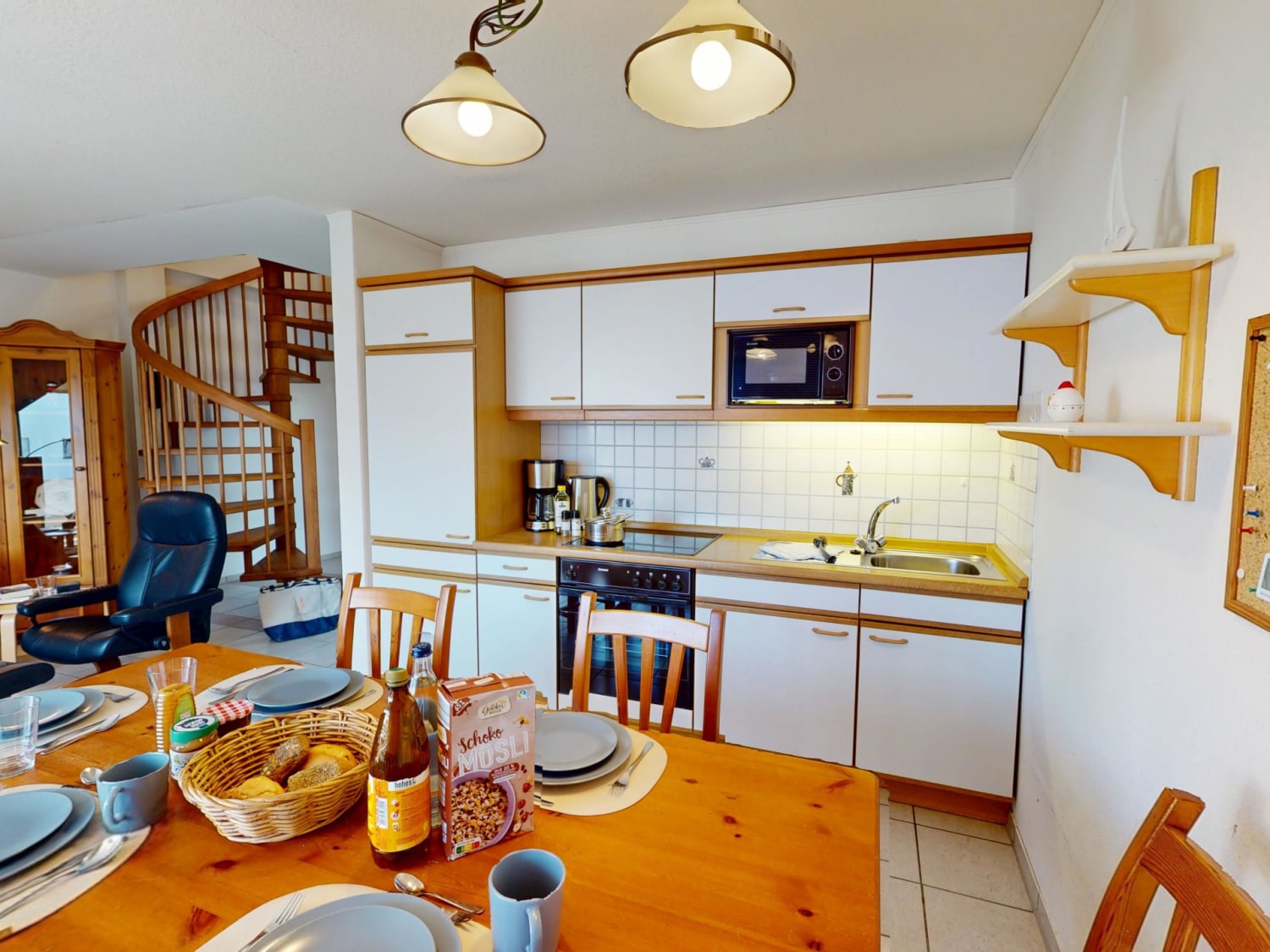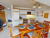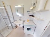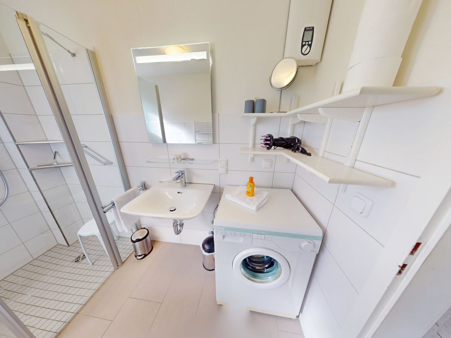 Die voll ausgestattete Küche bietet alles, was Sie für die Selbstverpflegung benötigen. Das Badezimmer ist mit einer Dusche ausgestattet. Für zusätzlichen Komfort sorgt eine Waschmaschine direkt in der Wohnung.