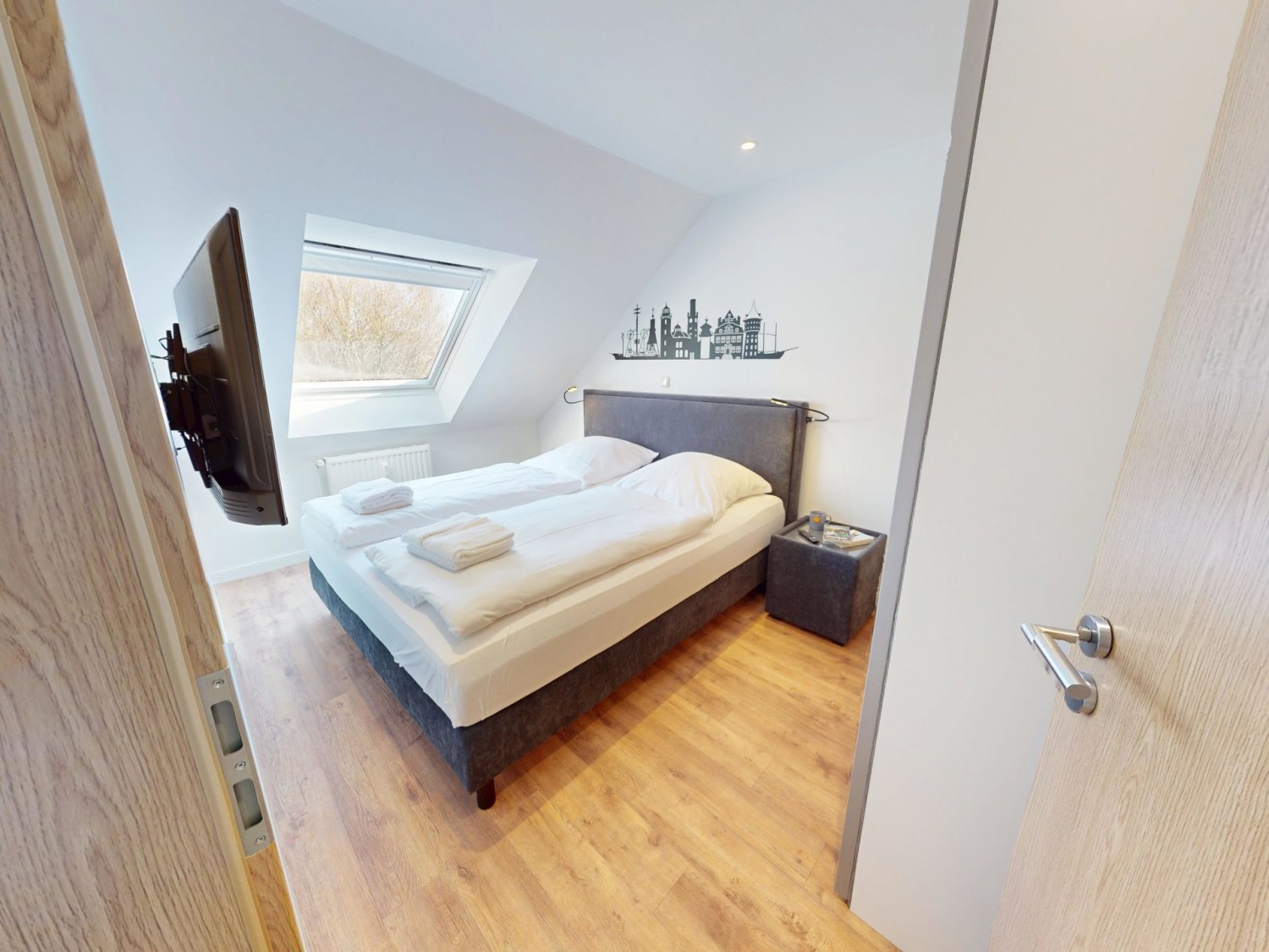 Die Wohnung verfügt über drei Schlafzimmer mit insgesamt zwei Doppelbetten und einem Einzelbett, die für eine angenehme Nachtruhe sorgen. Kostenloses WLAN steht den Gästen selbstverständlich zur Verfügung.