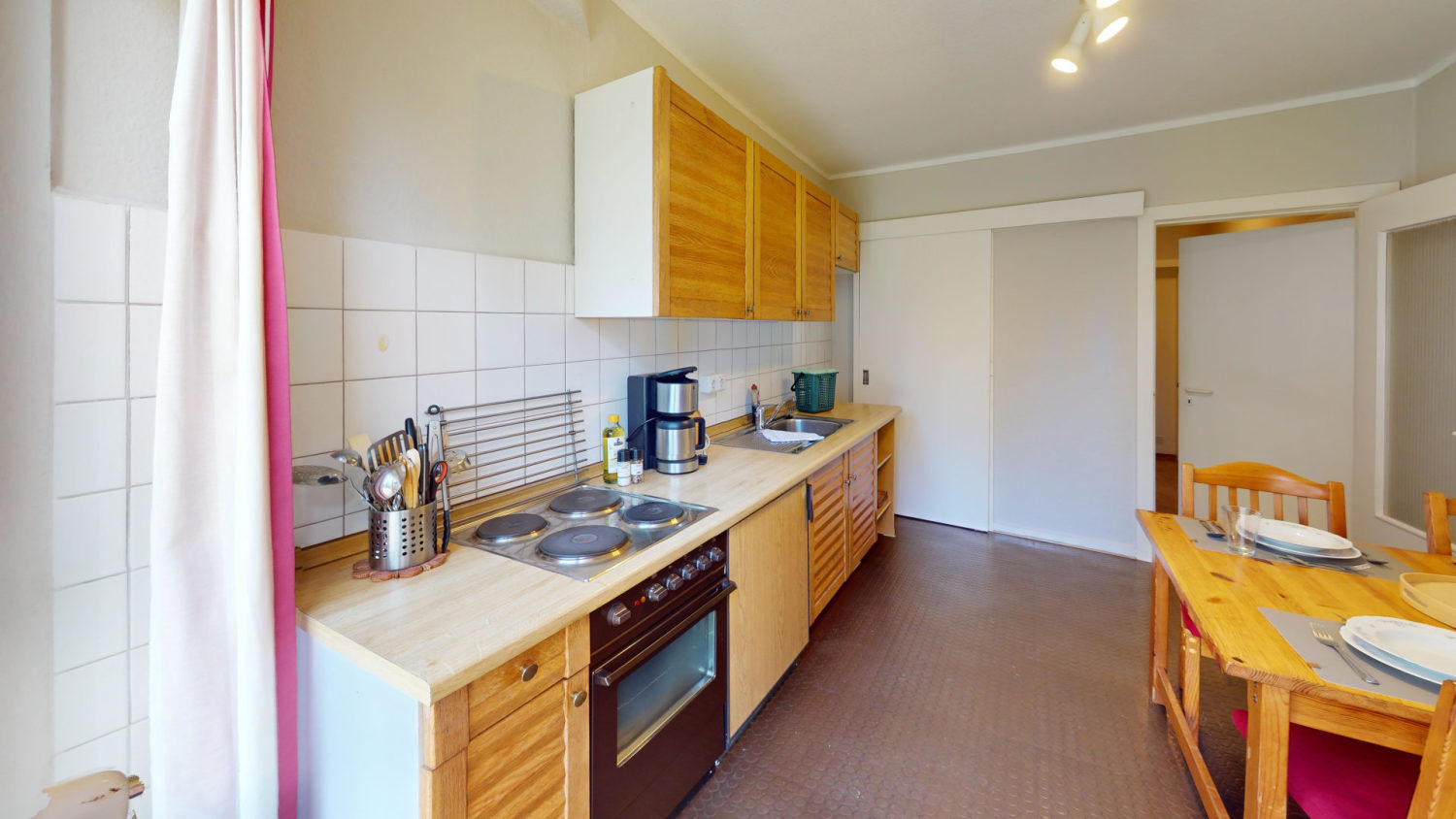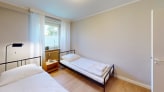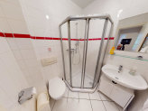 Insgesamt stehen Ihnen zwei Schlafzimmer zur Verfügung: eines mit einem komfortablen Doppelbett und ein weiteres mit zwei Einzelbetten – ideal für Familien oder gemeinsam reisende Gäste. Das Badezimmer ist mit einer Dusche ausgestattet und bietet alles, was Sie für einen entspannten Aufenthalt benötigen.