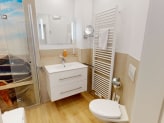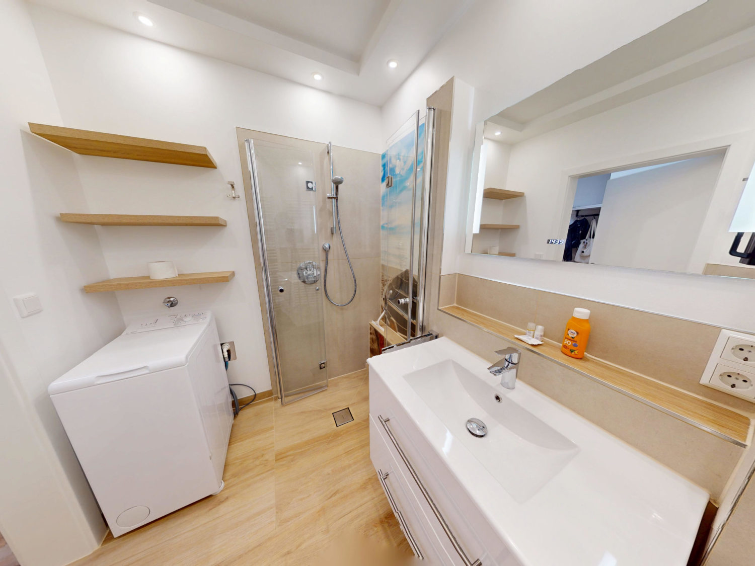 Das Badezimmer mit ebenerdiger Dusche rundet das Angebot der Saphir - 2 ab. Eine Waschmaschine, um Ihre Kleidung vom Sand und Schlick zu befreien, steht Ihnen im Badezimmer zur Verfügung. Einen Trockner können Sie gegen eine Gebühr im Trockenraum nutzen.