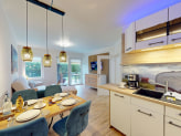 Die gemütliche 2-Raum-Ferienwohnung Saphir - 2 bietet bis zu 4 Personen Platz für einen erholsamen Urlaub. Die im Erdgeschoss liegende Ferienwohnung befindet sich in Cuxhaven Döse, nur wenige Schritte vom Freibad Steinmarne entfernt.