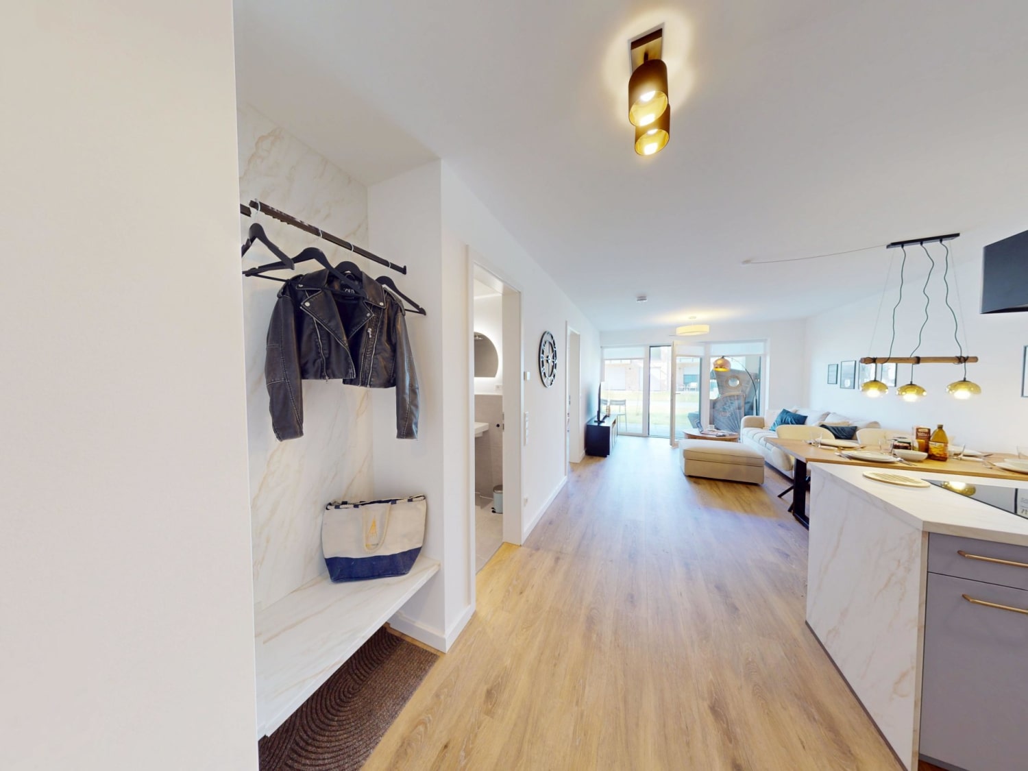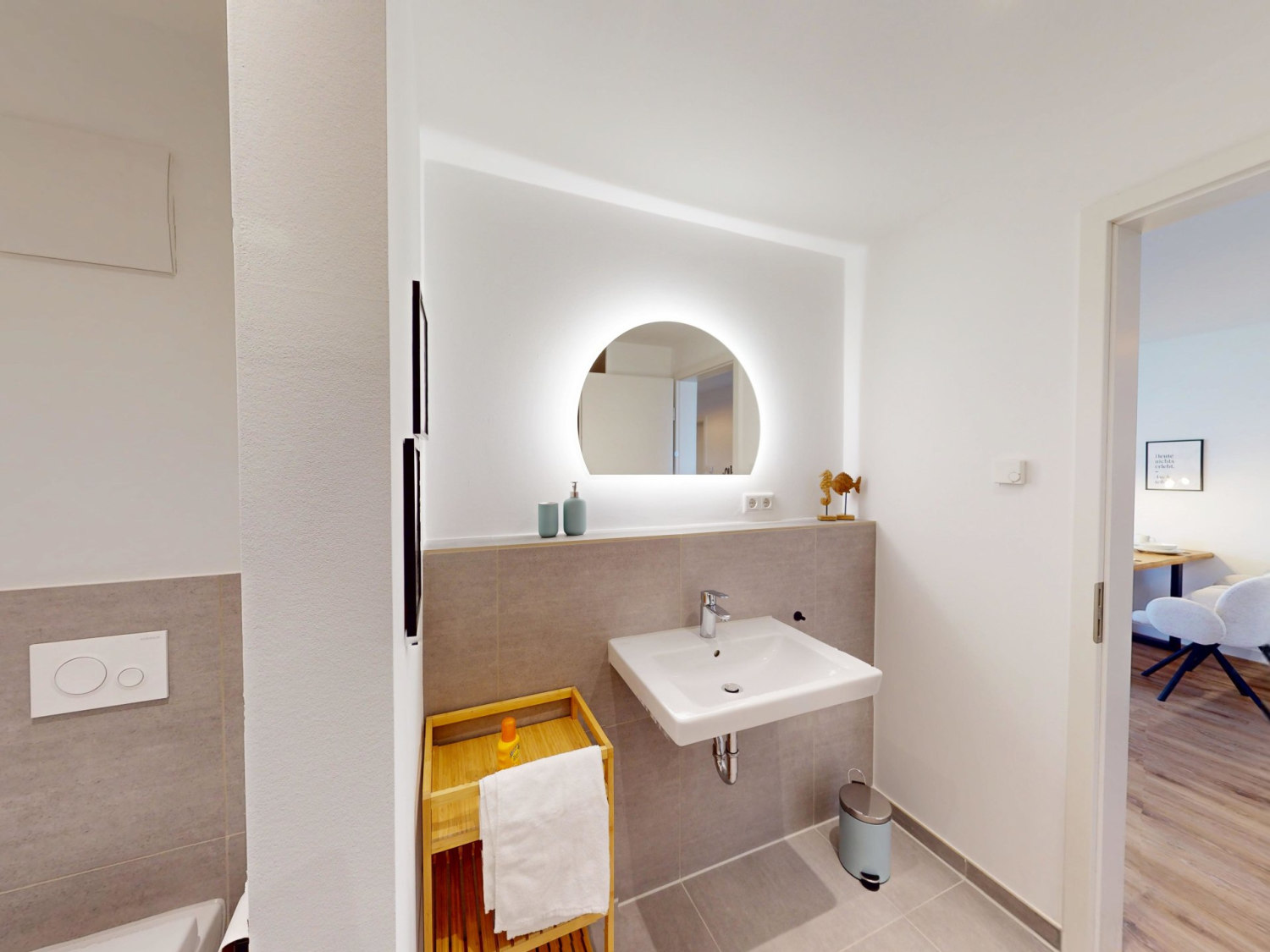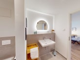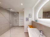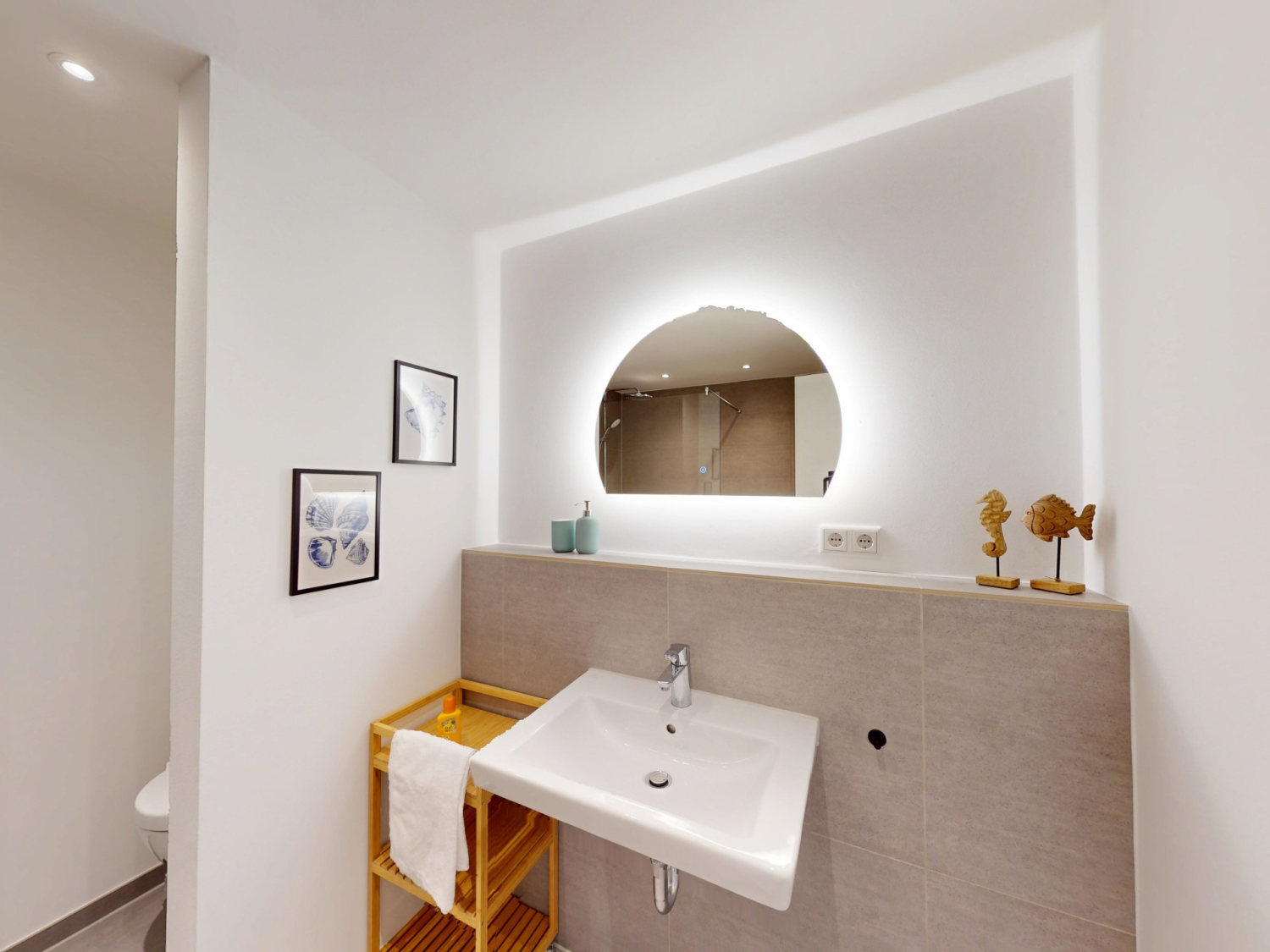 In dem modernen Badezimmer mit bodengleicher Dusche können Sie sich nach langen Tagen am Strand wieder frisch machen.