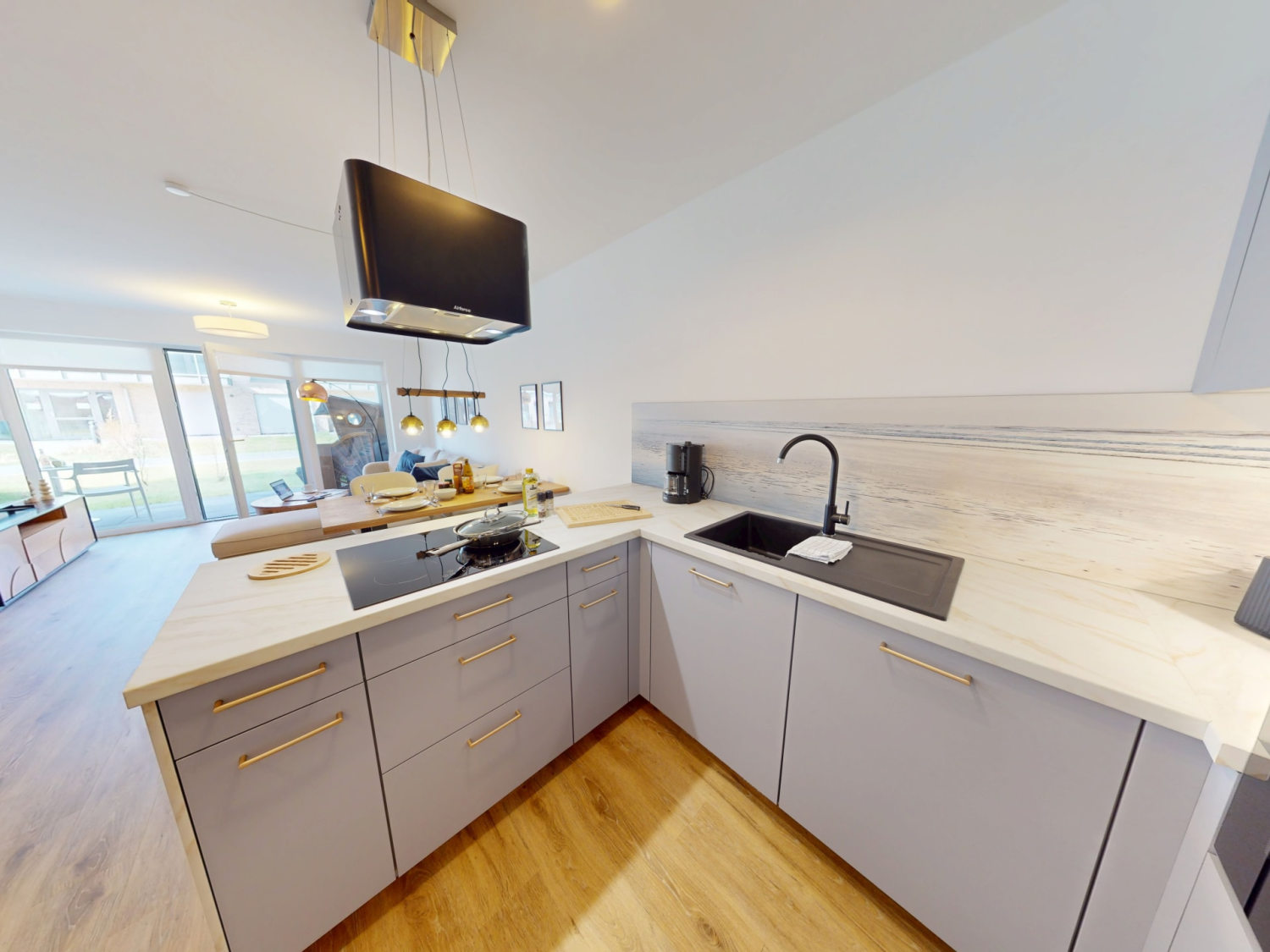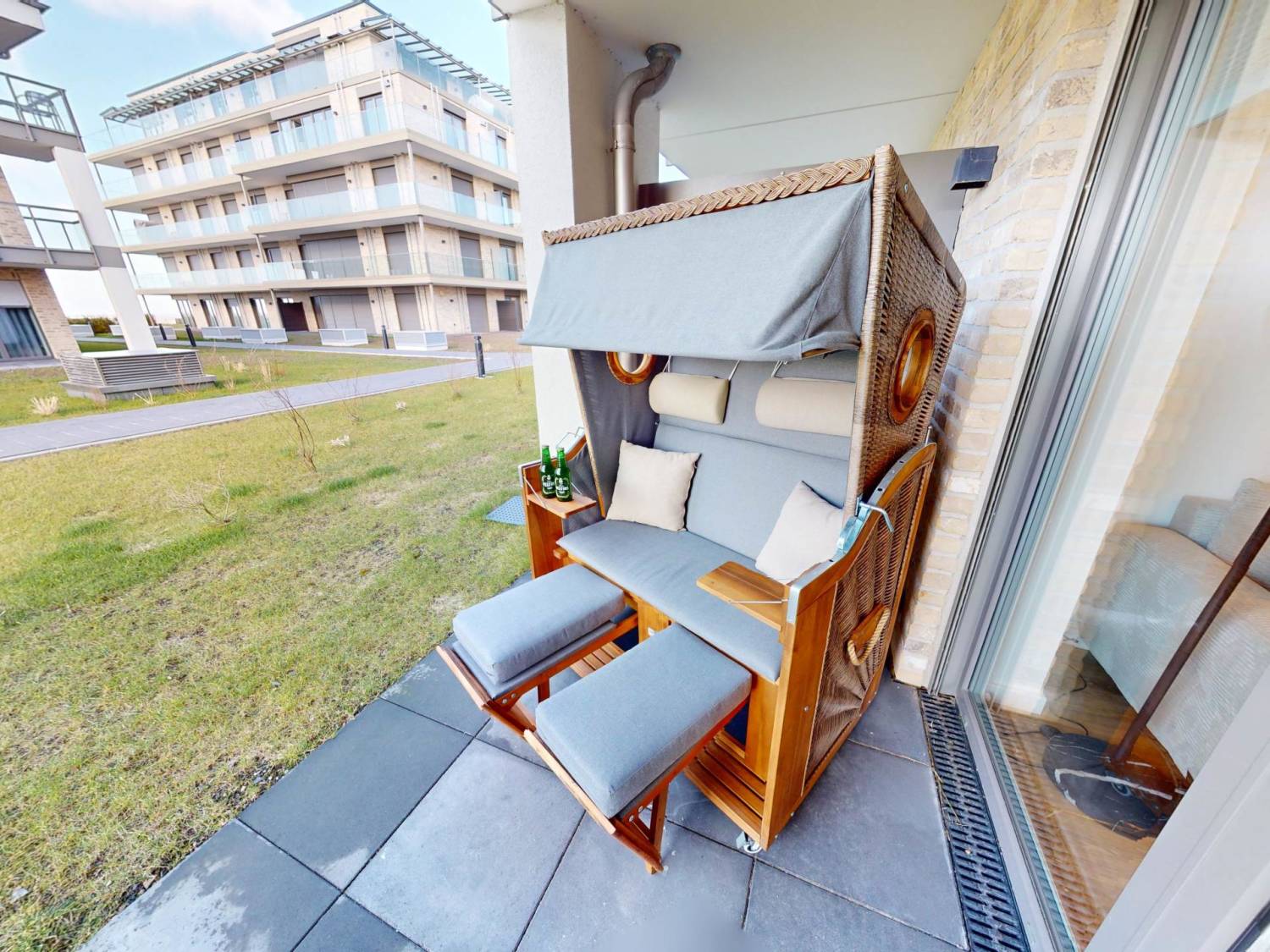 Auf der überdachten Terrasse können Sie, nur wenige Meter vom Strand entfernt, langsam in den Tag starten. Genießen Sie hier bei seitlichem Meerblick und einer frischen Nordseebrise Ihren morgendlichen Kaffee oder lassen Sie lange Sommerabende bei einem Glas Wein ausklingen.