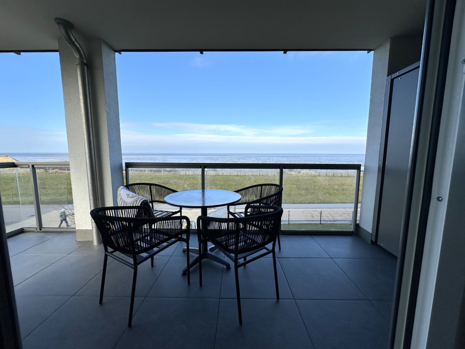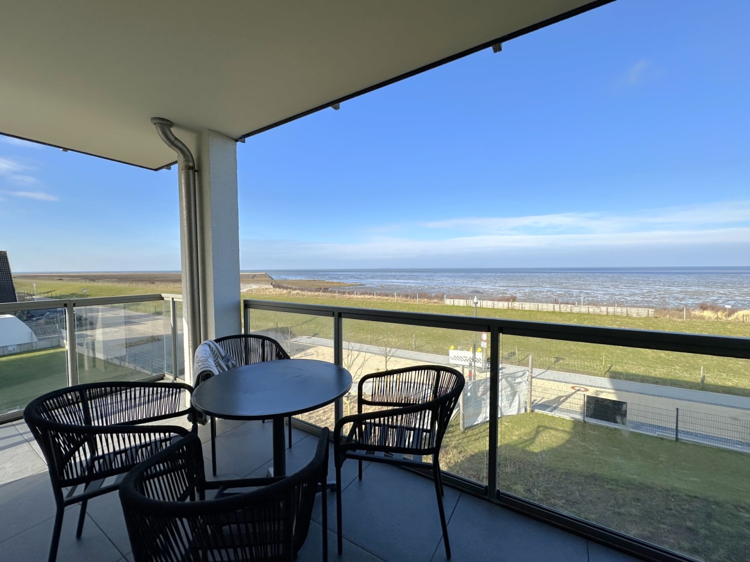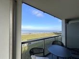 Die bodentiefe Panoramafensterfront und der große, überdachte Balkon mit Blick auf das UNESCO-Weltnaturerbe Wattenmeer, sind einige der zahlreichen Highlights der Wohnung, die zum Verweilen einladen. Der Wohnbereich, der den Mittelpunkt der Ferienwohnung darstellt, verfügt über eine integrierte Küche, in der gemeinsamen Kochabenden nichts mehr im Wege steht. Genießen Sie hier beim Kochen an der Kochinsel und anschließenden verspeisen im angrenzenden Essbereich den weiten Blick über die Nordsee. Wenn Sie am Morgen die ersten Sonnenstrahlen sehen, können Sie den ersten Kaffee des Tages gemütlich auf dem Balkon genießen. Auch vom Sofa aus lässt sich der Weitblick genießen. Für Unterhaltung sorgt zusätzlich ein großer Fernseher und das kostenfreie W-LAN.