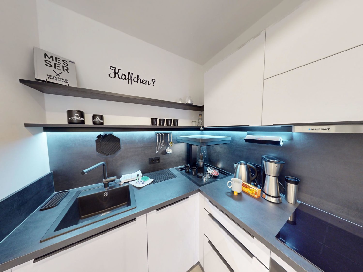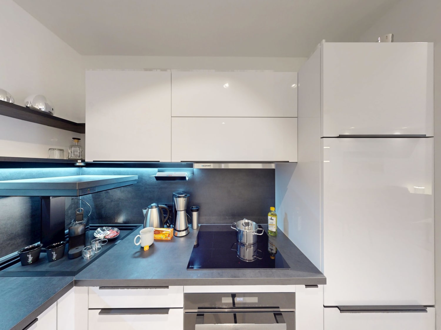 Die moderne, voll ausgestattete Küche lädt dazu ein, den Tag mit einem gemeinsamen Frühstück und frischem Kaffee zu beginnen – die Spülmaschine übernimmt den Abwasch danach, so dass Sie Ihren Urlaub in vollen Zügen genießen können. In einem Eckaufzug, der in die Küchentheke integriert ist, befindet sich eine Nespresso-Maschine.