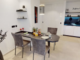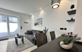 Zurück in der Wohnung genießen Sie den Abend im offenen Wohn- und Essbereich oder auf der angrenzenden Terrasse, wo Sie die frische Meeresluft bei einem Glas Wein auf sich wirken lassen. Schutz vor der Sommersonne bietet Ihnen ein Sonnenschirm, den Sie in der Wohnung finden. Für Unterhaltung sorgen zwei Smart-TVs, eine Bose-Soundbar sowie kostenloses WLAN.
