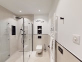 Das Badezimmer überzeugt mit klarer Gestaltung und einer belebenden Dusche – perfekt für eine Erfrischung nach einem sonnigen Tag am Meer. Das integrierte Radio im Badezimmer sorgt für extra Entertainment.