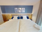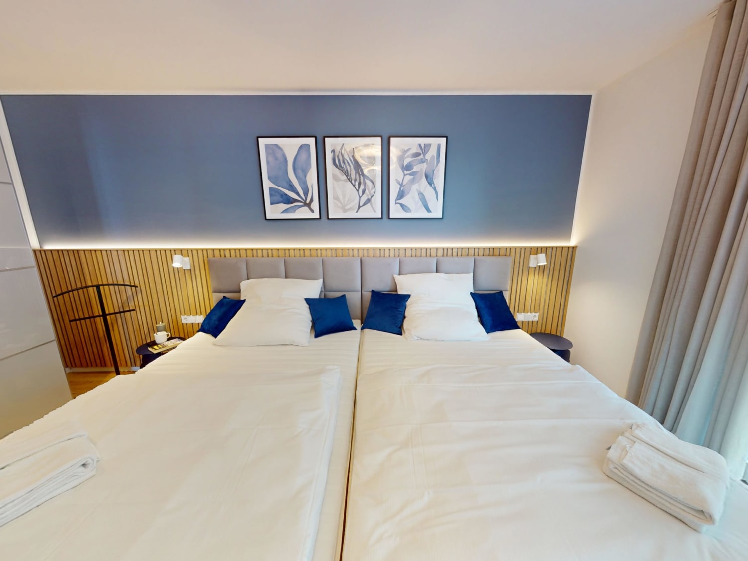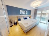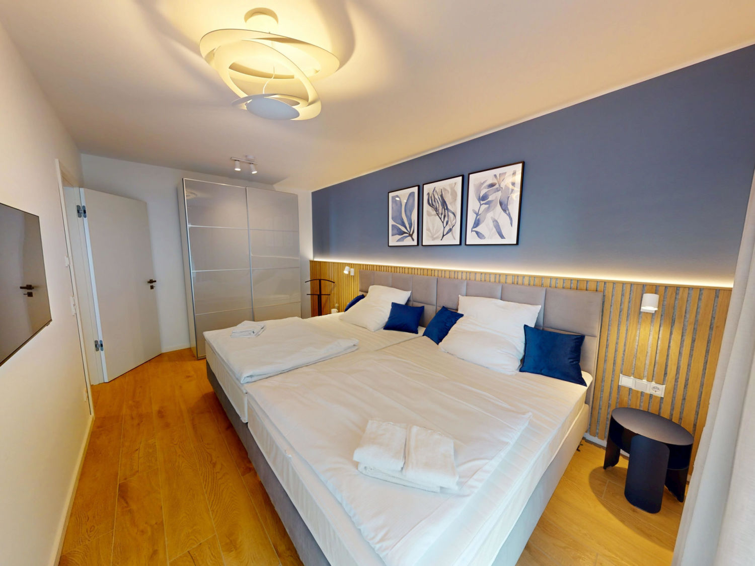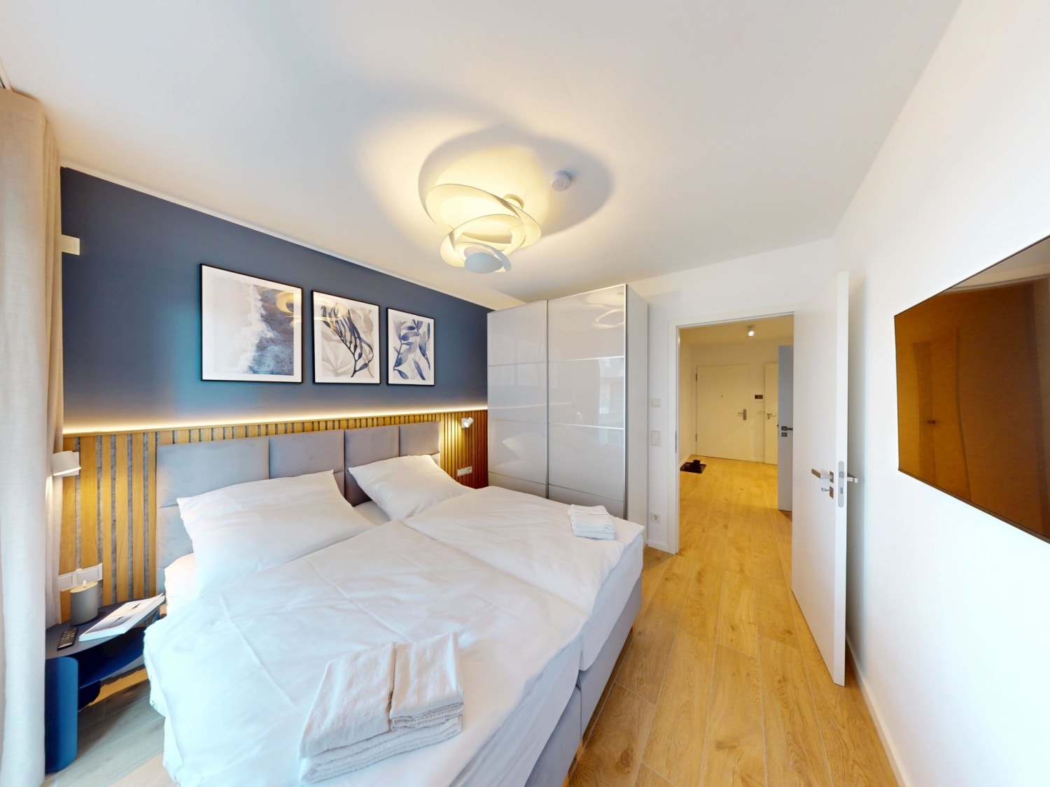 Insgesamt drei Schlafzimmer sorgen für erholsame Nächte. Zwei Schlafzimmer sind mit komfortablen Doppelbetten ausgestattet, das dritte bietet ein besonders großzügiges Familienbett (2,80 m breit) – ideal für den Familienurlaub in Cuxhaven. Die Schlafzimmer verfügen über Kleiderschränke sowie eigene Fernseher und bieten somit genügend Raum für Rückzug und Privatsphäre.