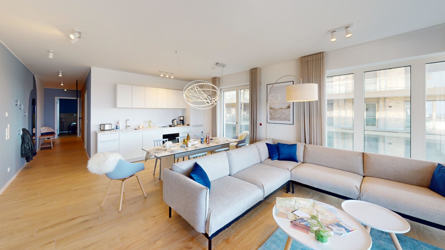 Die Ferienwohnung Zuhause in Duhnen – 551 befindet sich im 1. Obergeschoss und bietet mit großzügigen 112 m² ausreichend Platz für einen erholsamen Urlaub mit bis zu sechs Personen – direkt an der Duhner Spitze. Nur 50 Meter vom Meer und dem kilometerweiten Sandstrand entfernt, genießen Sie hier Ihre persönliche Auszeit mit traumhaftem Panorama-Meerblick.